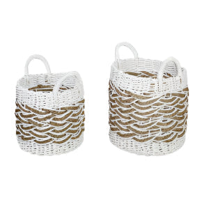 Three handwoven baskets with coastal charm—perfect for organizing, styling, and layering natural textures throughout your...