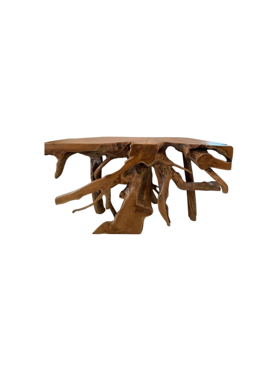 A striking organic coffee table handcrafted from solid teak root with a naturally sculpted top...