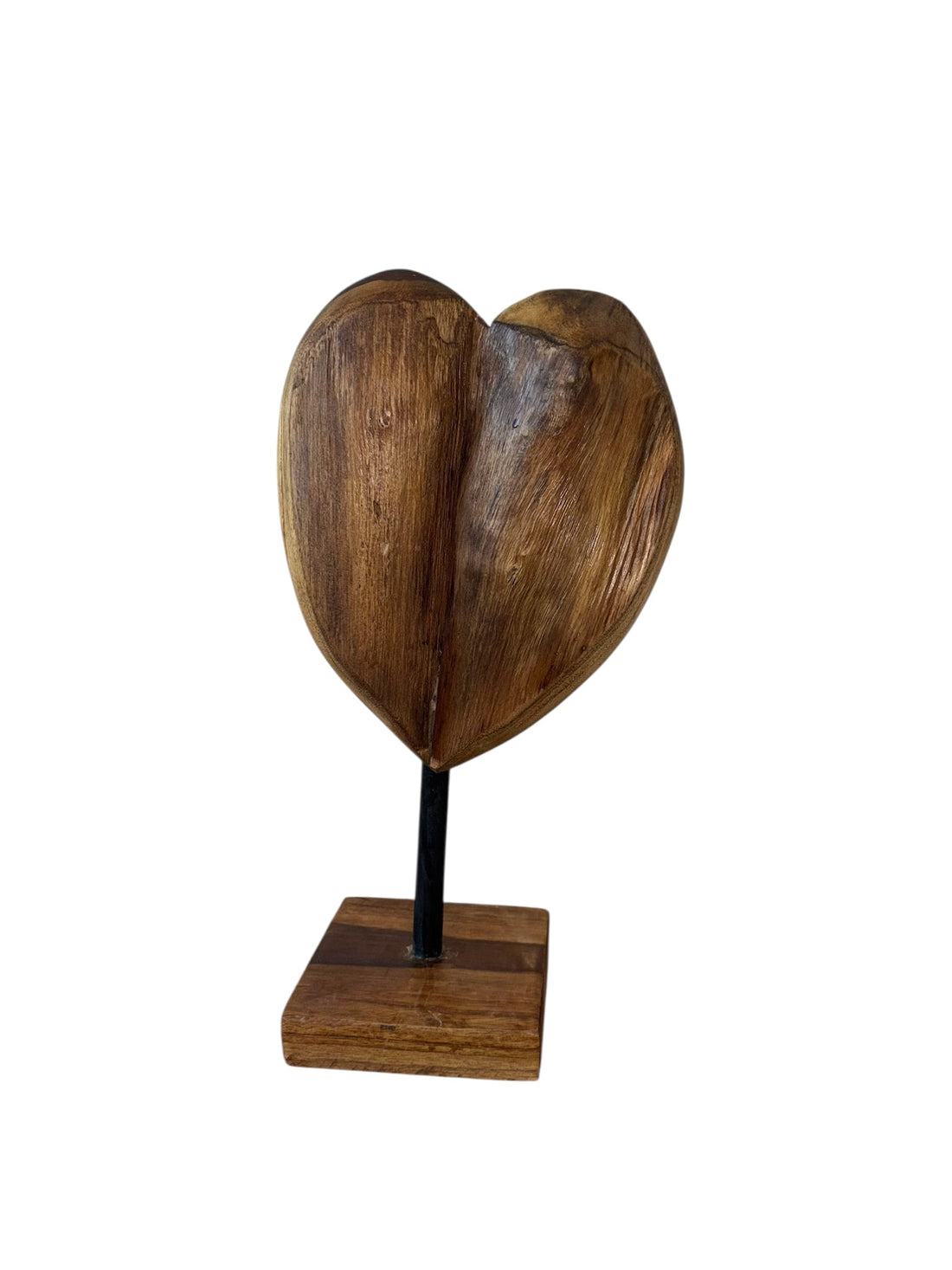 Hand-carved from solid teak wood, these heart sculptures symbolize warmth and love. Each sits atop...