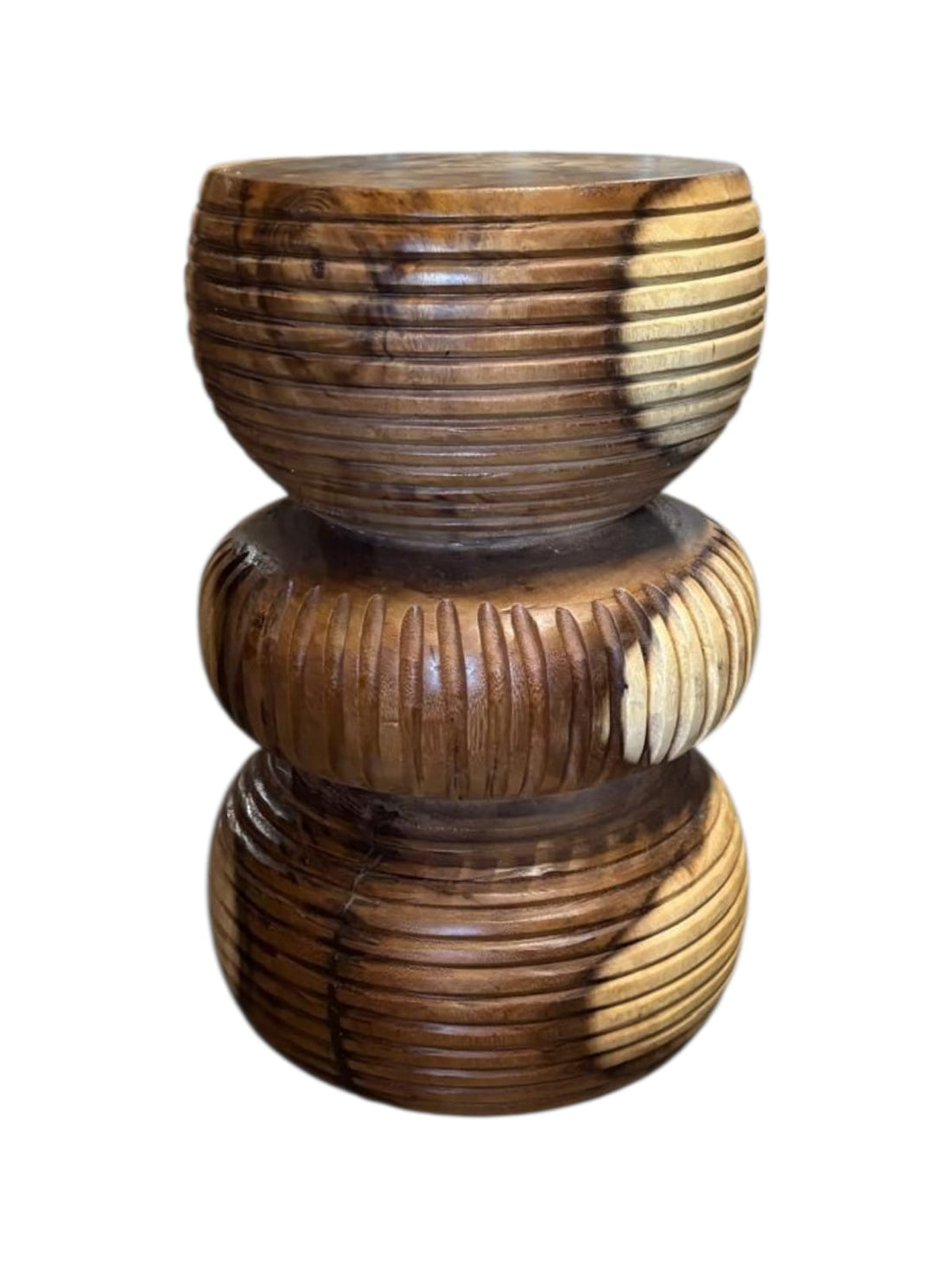 Carved from solid Suar wood, the Garis Stool features stacked circular forms that embody balance...