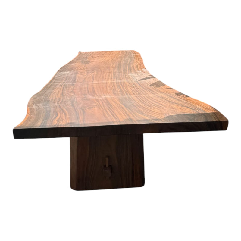 Crafted from a single slab of solid Suar wood, the Grandeur Dining Table is a...