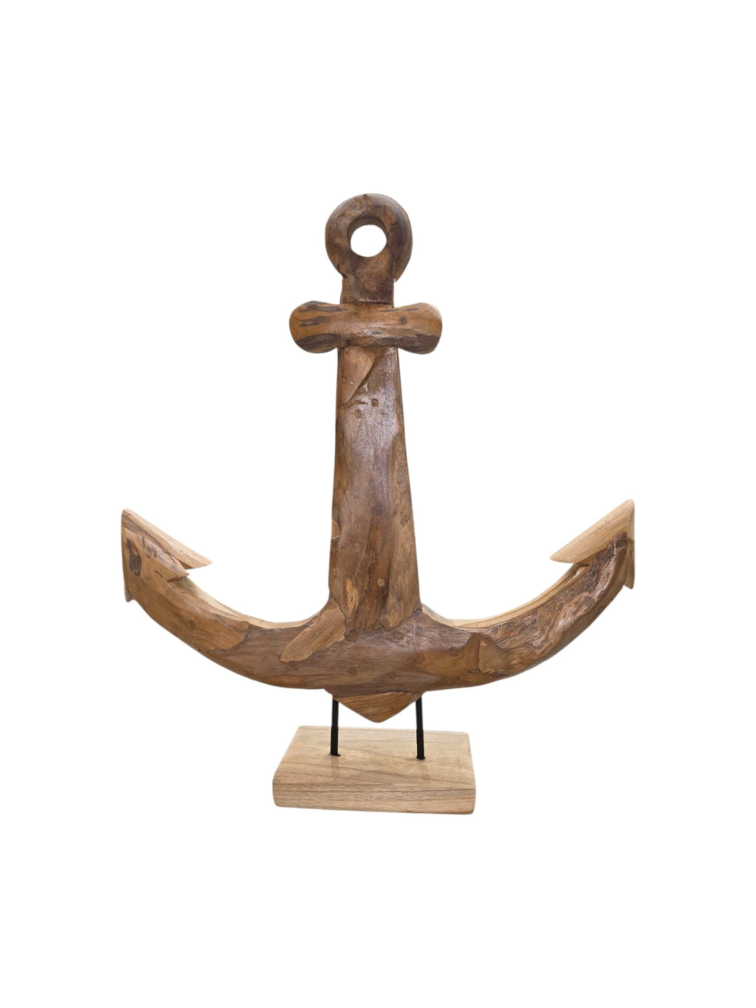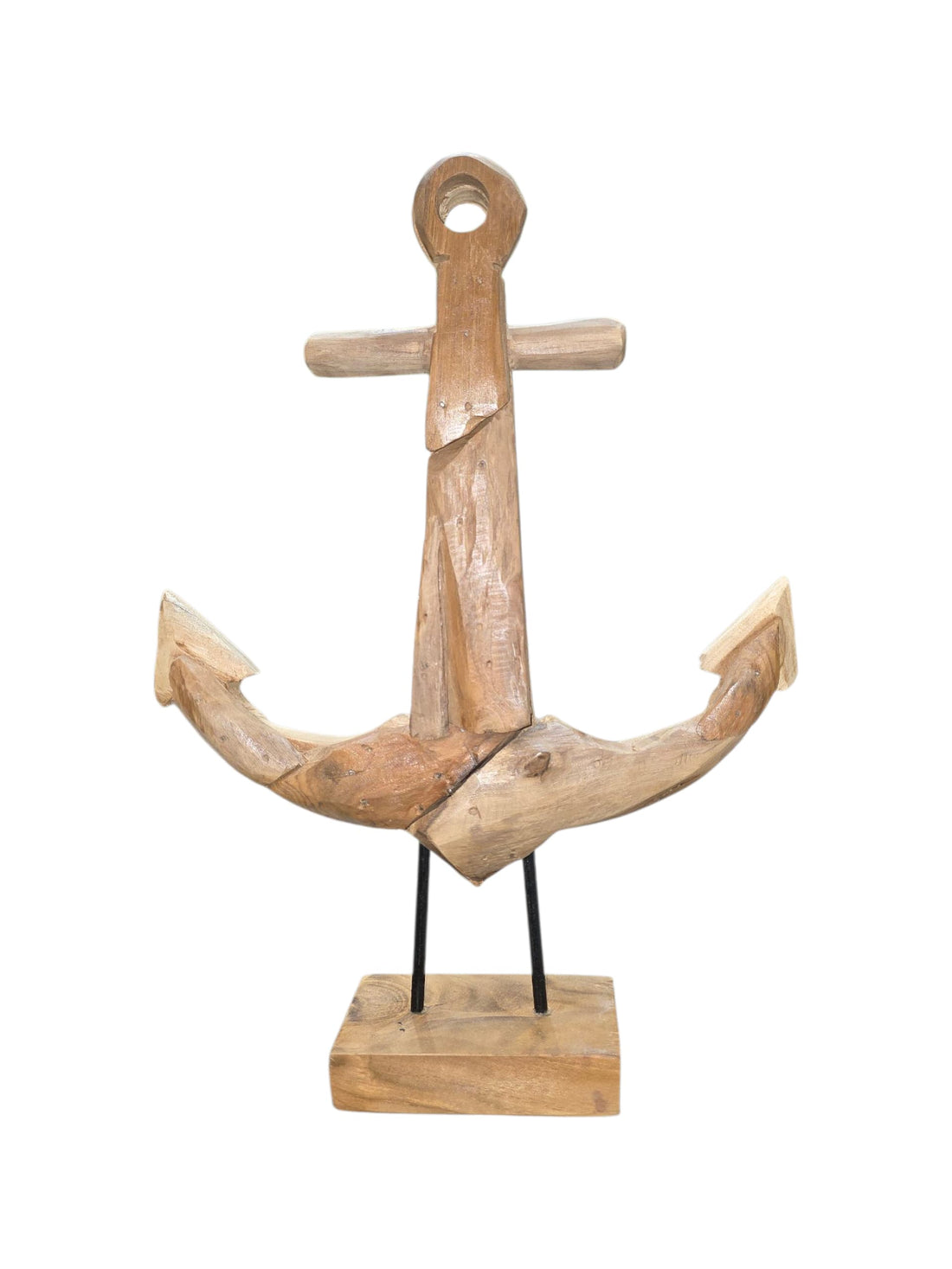 Medium teak anchor sculpture — handcrafted with beautiful wood grain detailing for a refined coastal...