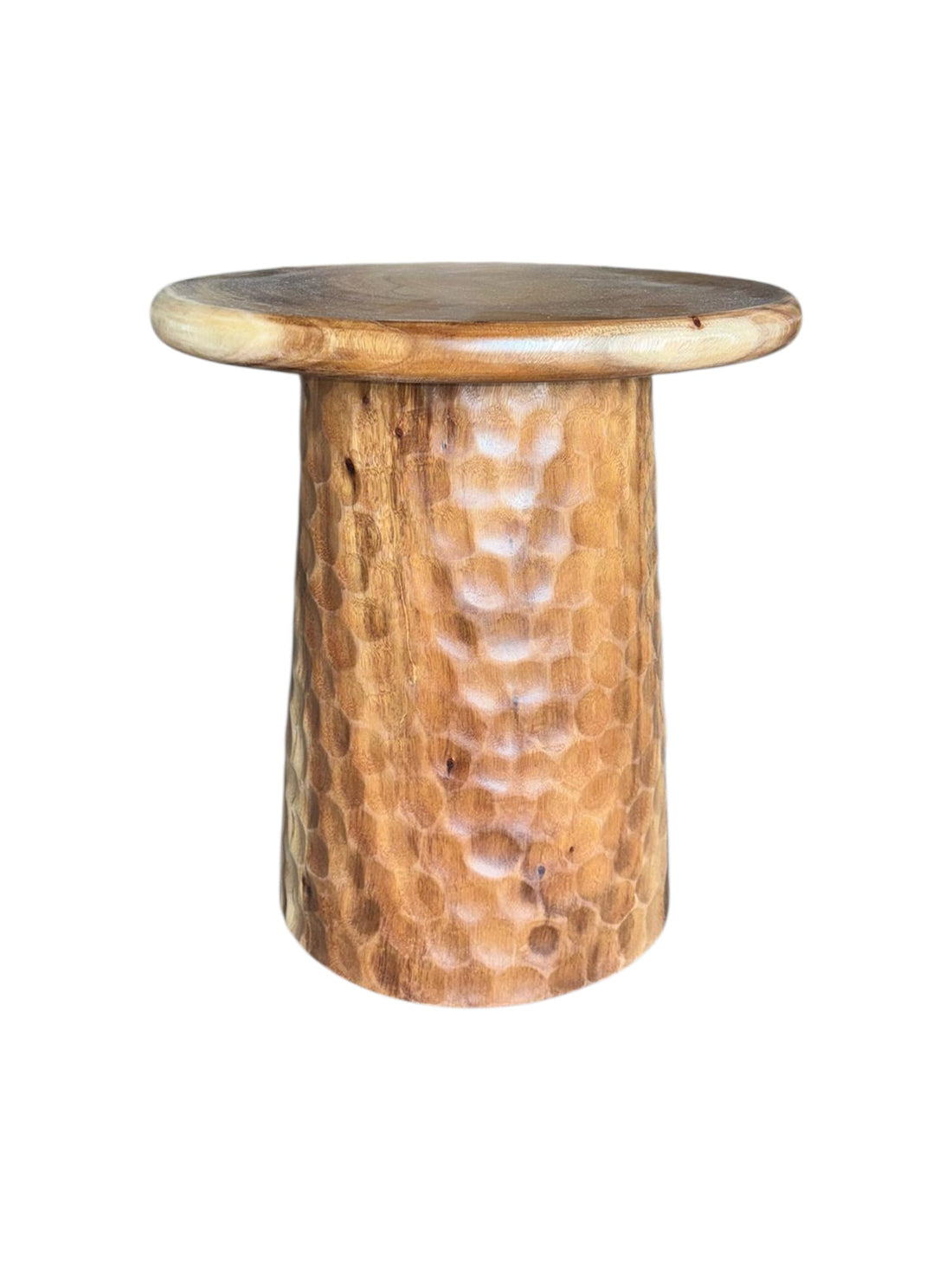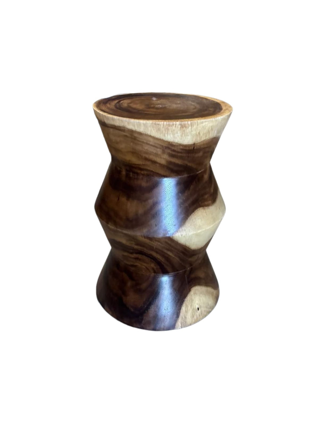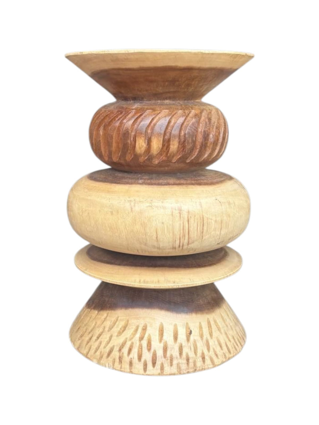 Carved from solid Suar wood, the Garis Stool features stacked circular forms that embody balance...