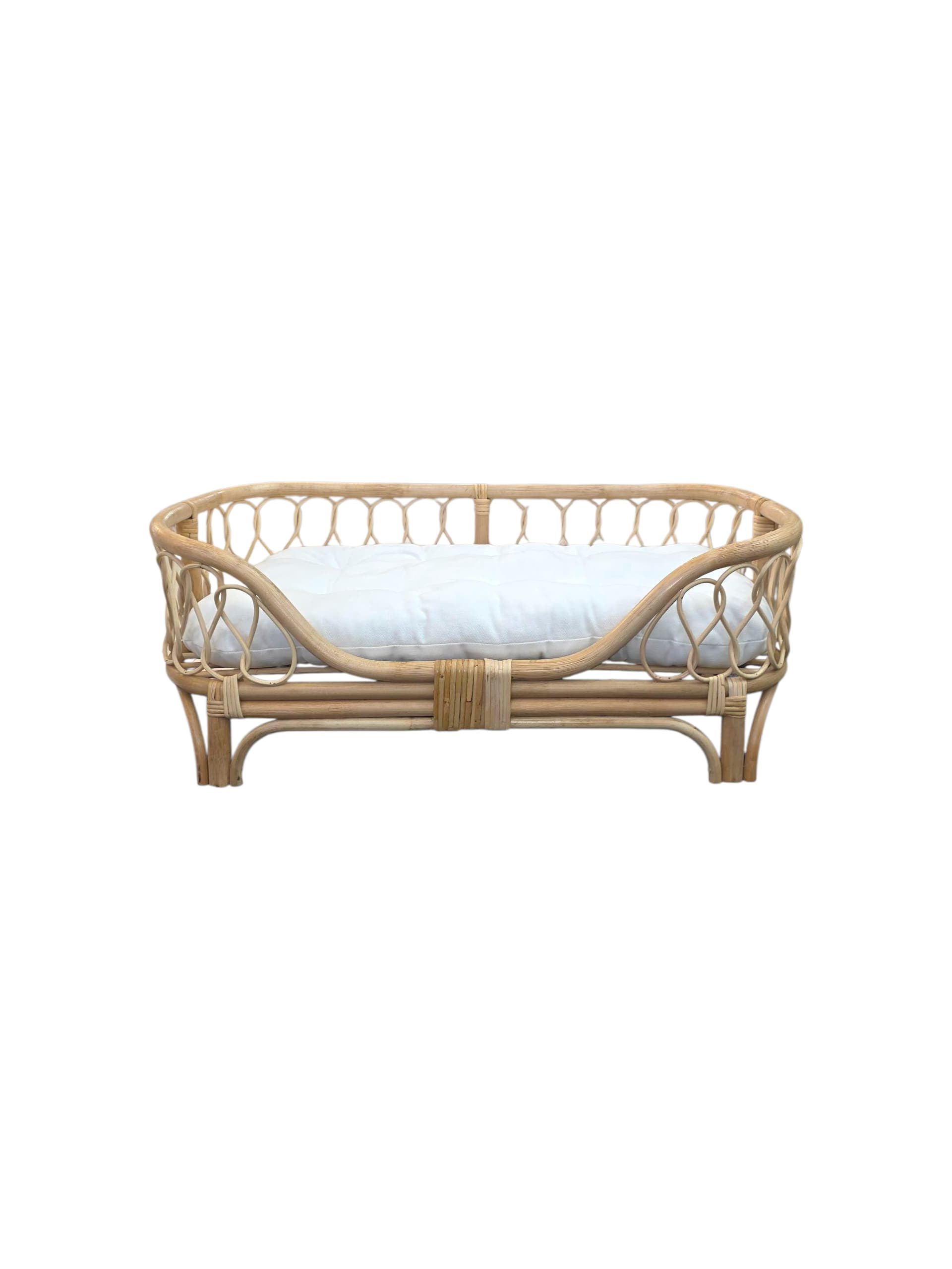 Cozy and chic, this handcrafted rattan pet bed includes a plush cushion - designed to elevate any space while keeping your furry friend comfortable.