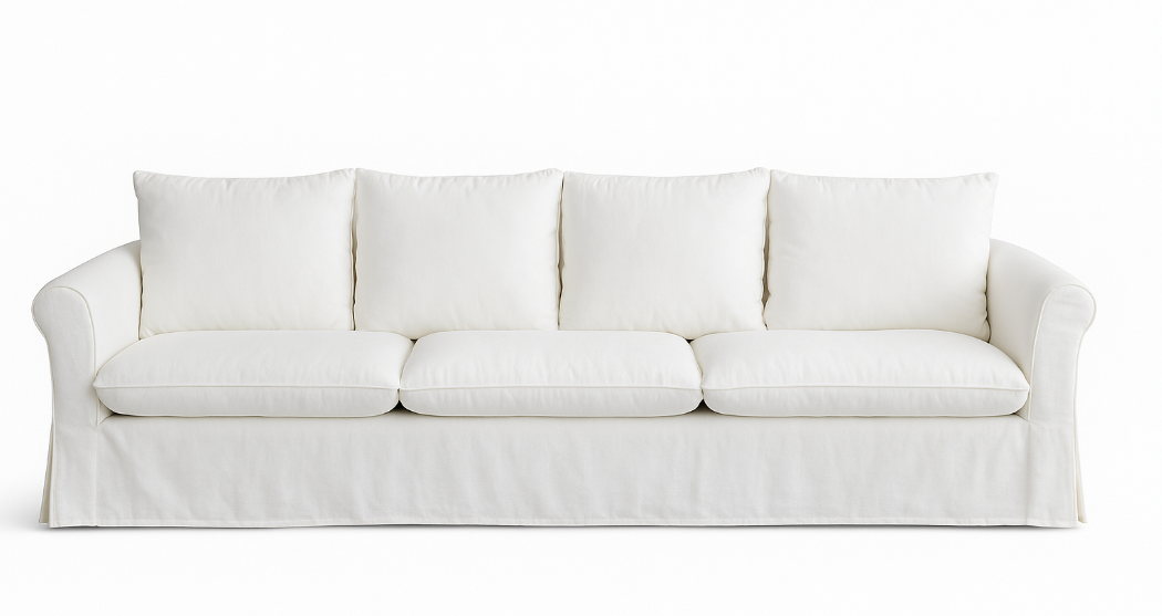 The Bandol White Sofa embodies effortless coastal elegance with its relaxed silhouette and cloud-like comfort. Upholstered in a crisp white, removable slipcover, this piece exudes a timeless, lived-in charm that fits seamlessly into both modern and bohemian interiors. Its deep seat cushions and plush back pillows invite you to sink in, while the tailored skirt base adds a touch of refinement. Perfect for airy living spaces or serene lounges, the Bandol offers both style and versatility - a statement in simplicity and comfort.