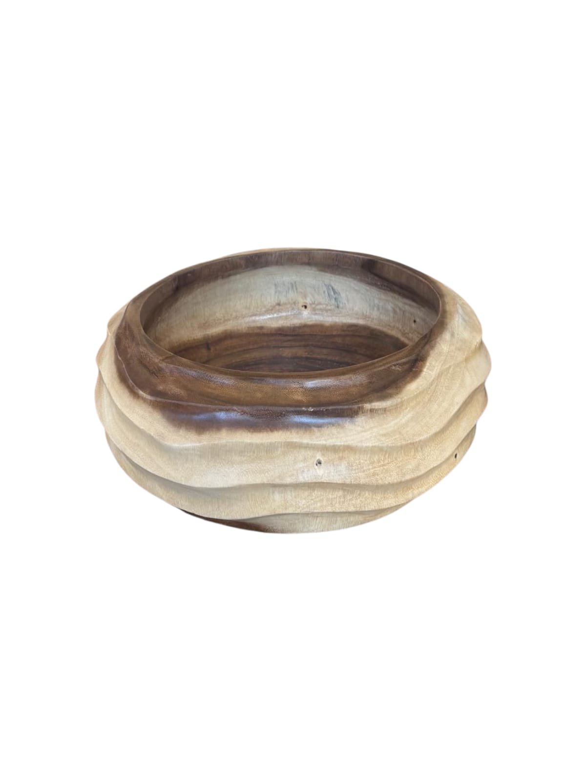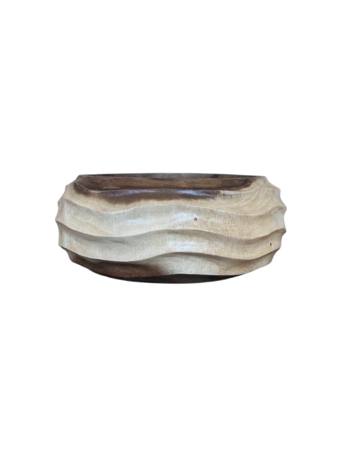 The Binaya Bowl is hand-carved from Suar wood and finished in a smooth, natural tone. Ideal as a centerpiece, fruit bowl, or catchall tray, it celebrates the beauty of simplicity and craftsmanship.