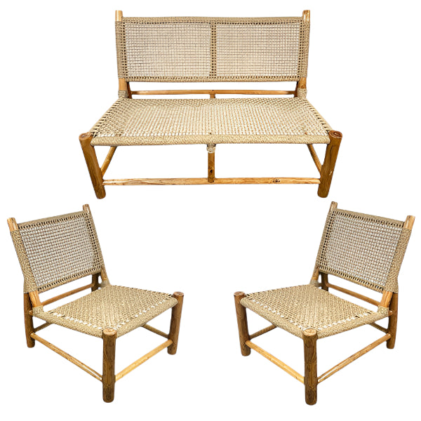 Add a touch of refined tropical charm to your outdoor space with the Bora Seating Set. This elegant ensemble features two single sofas, one loveseat, and a matching teak wood table, all beautifully crafted from premium teak wood and high-quality synthetic rattan for a perfect blend of natural warmth and modern durability.