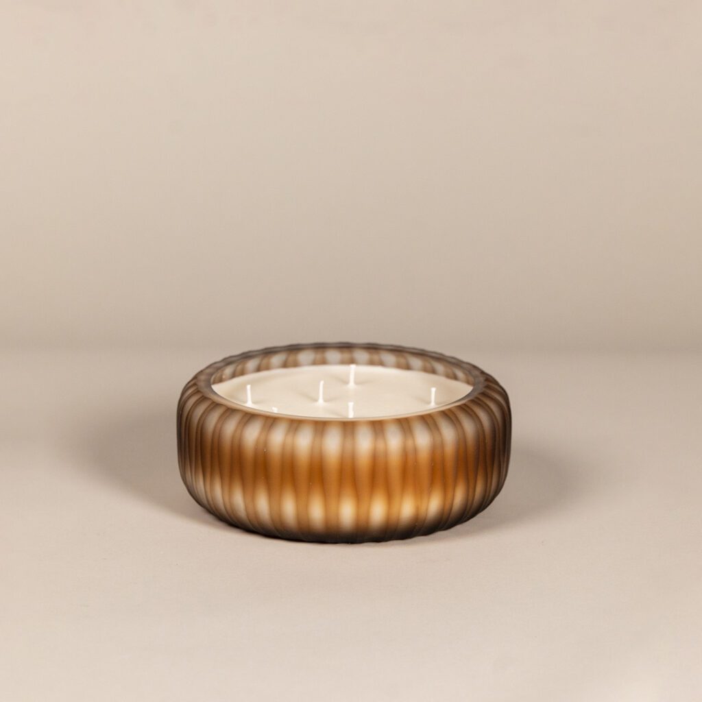 The Kim Bowl Candle is a sculptural statement piece from our new glass collection, designed to bring warmth, texture, and understated elegance to any space. Featuring a low, rounded bowl silhouette crafted from frosted glass with an oval-groove pattern, it casts a soft, ambient glow that enhances the atmosphere of a room.