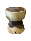 The Elantra Stool features a bold, curved base and clean circular top, carved entirely from solid Suar wood. Its sculptural form adds dimension and warmth to any space — equally striking as a standalone accent or practical seating.