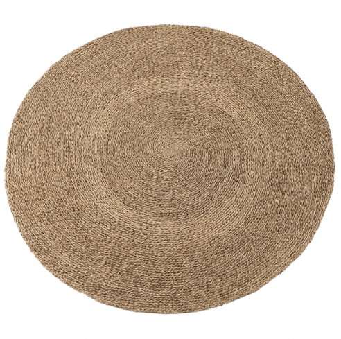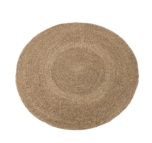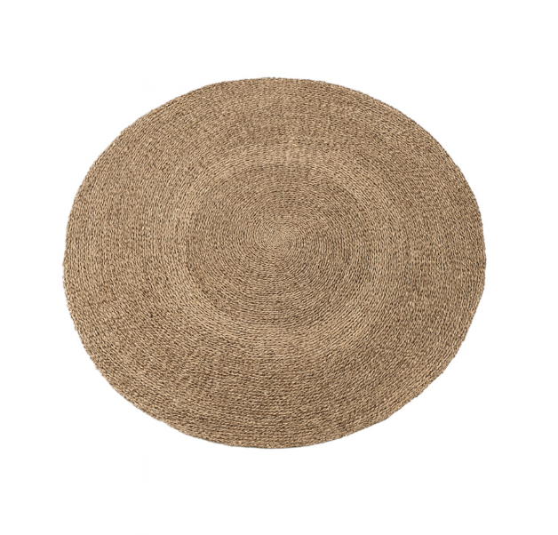 Seagrass Round Rug – This handwoven rug features a braided border and subtle fringe detailing for a natural yet refined look. Available in three sizes or as a full set.