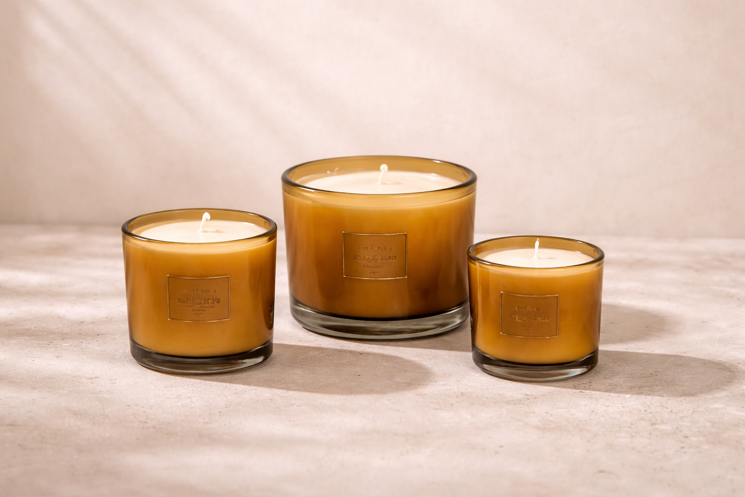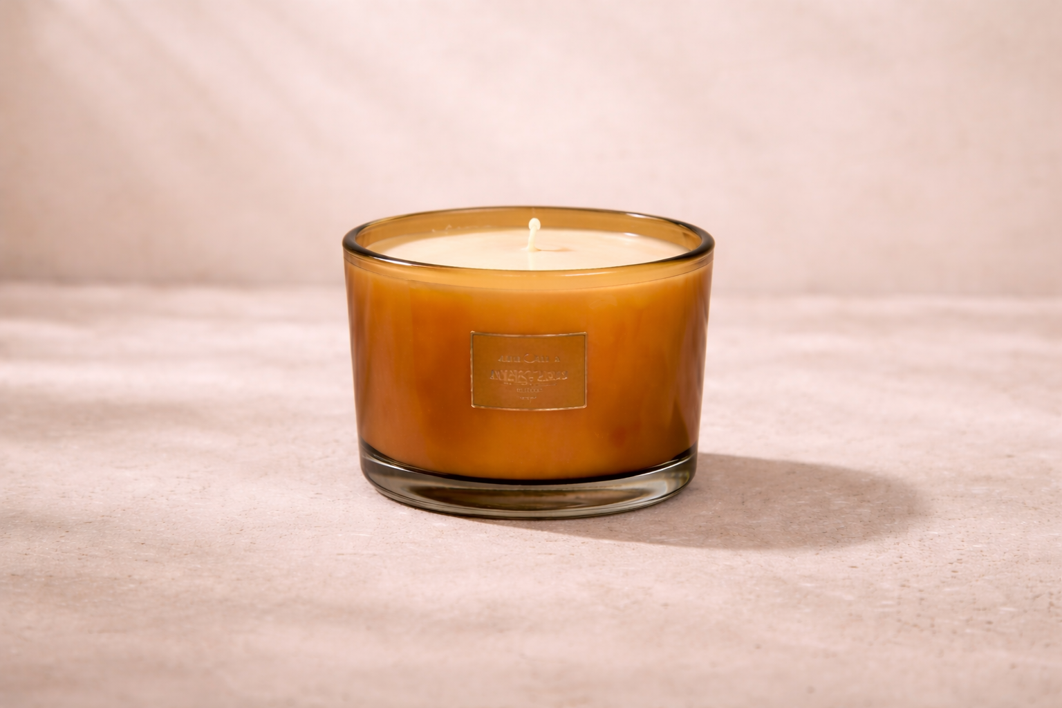 These amber glass cylinder scented candles bring warmth, depth, and timeless elegance to any interior. Crafted in rich amber-colored glass, each vessel softly diffuses candlelight, creating a cozy and atmospheric glow while adding a refined decorative touch.