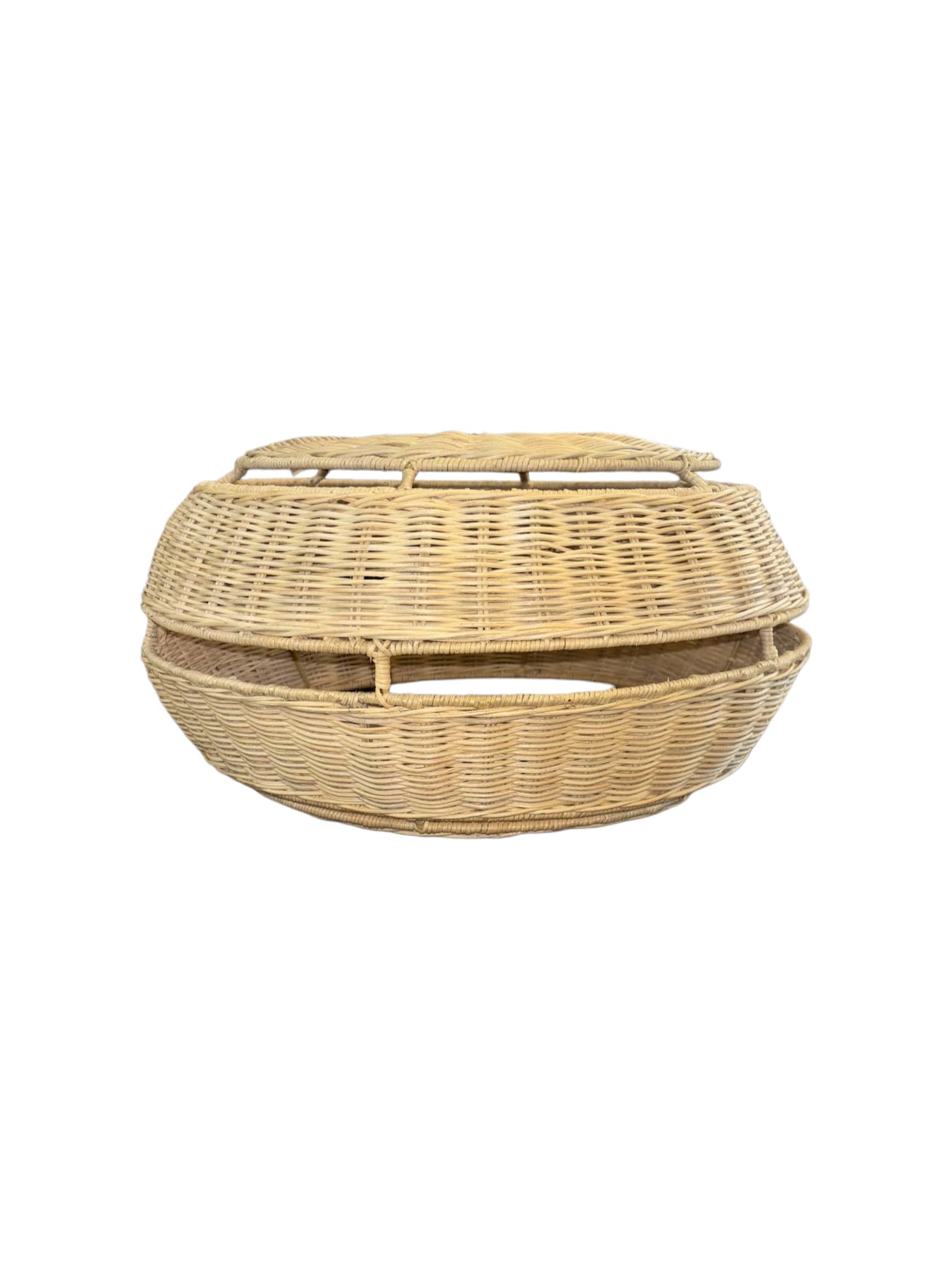 Handwoven rattan lampion pendant with a warm, ambient glow - ideal for creating cozy tropical lighting in any space.