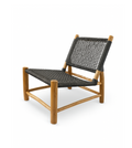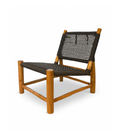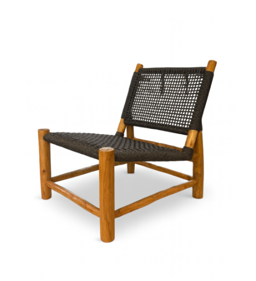 Striking and sculptural, the Makassar Woven Chair in Black combines bold contrast with artisanal craftsmanship. Featuring a solid teak wood frame and handwoven black cord seat and backrest, this chair offers both comfort and visual impact. Its low-slung silhouette and rich texture make it a standout piece in modern, coastal, or eclectic interiors — perfect for indoor or covered outdoor use.