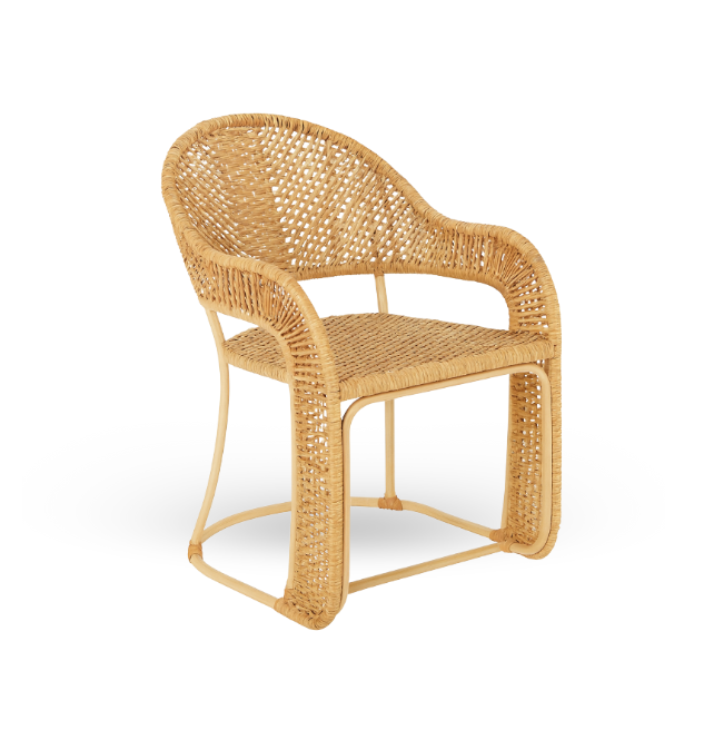 The Riviera Woven Dining Chair combines coastal charm with modern craftsmanship. Handwoven from durable natural rattan, it features a gently curved backrest and a flowing cantilever base that adds both comfort and sculptural appeal. The open-weave design allows for breathability while maintaining structure and support, making it perfect for indoor or covered outdoor dining spaces. Its neutral tone and organic texture bring warmth and timeless elegance to any setting - from a beachside terrace to a contemporary dining room.