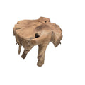 Crafted from natural teak root, this round side or coffee table brings organic beauty and unique character to any room